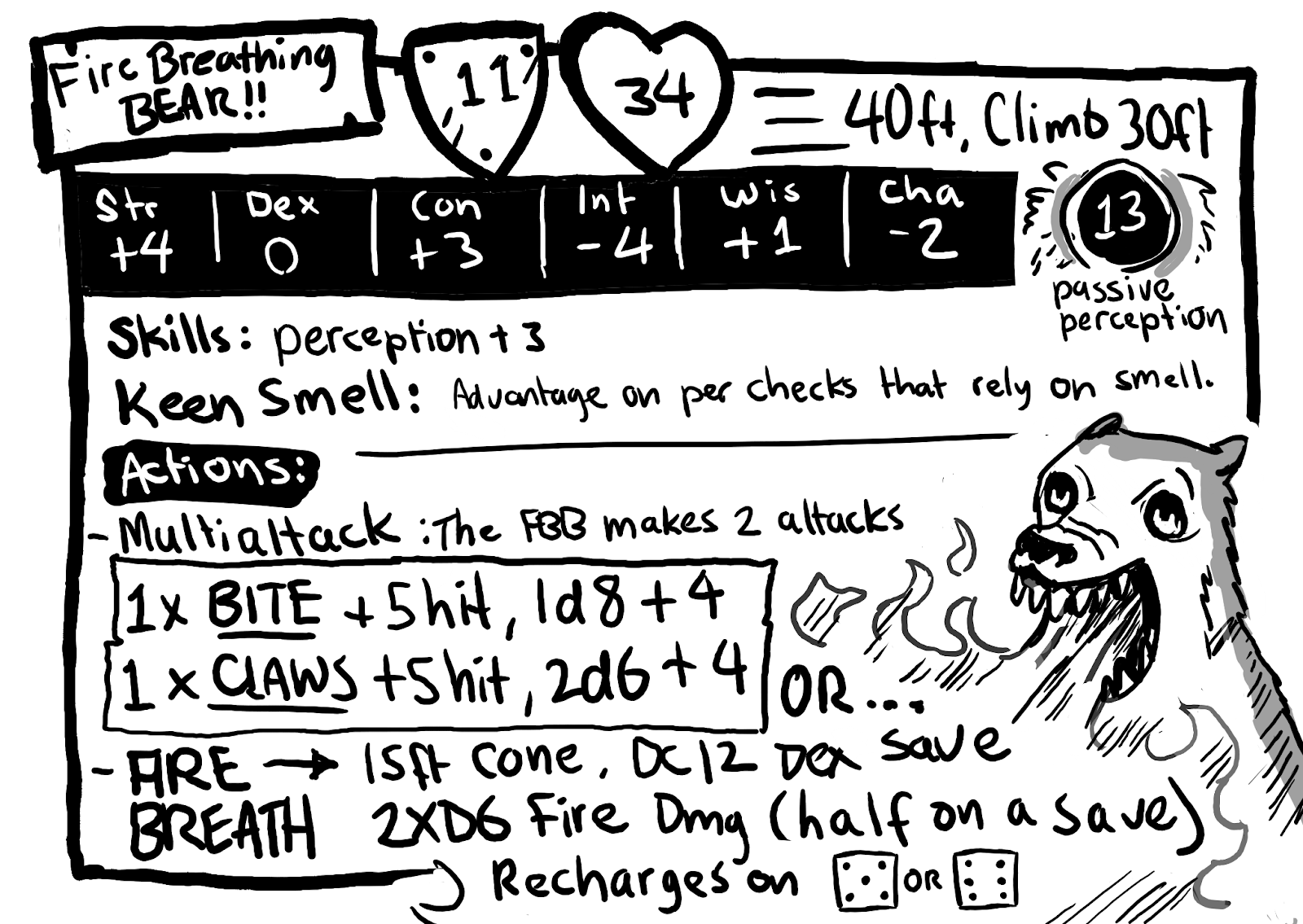 Here is a stat block for a fire breathing bear that you shouldn't use in your session.